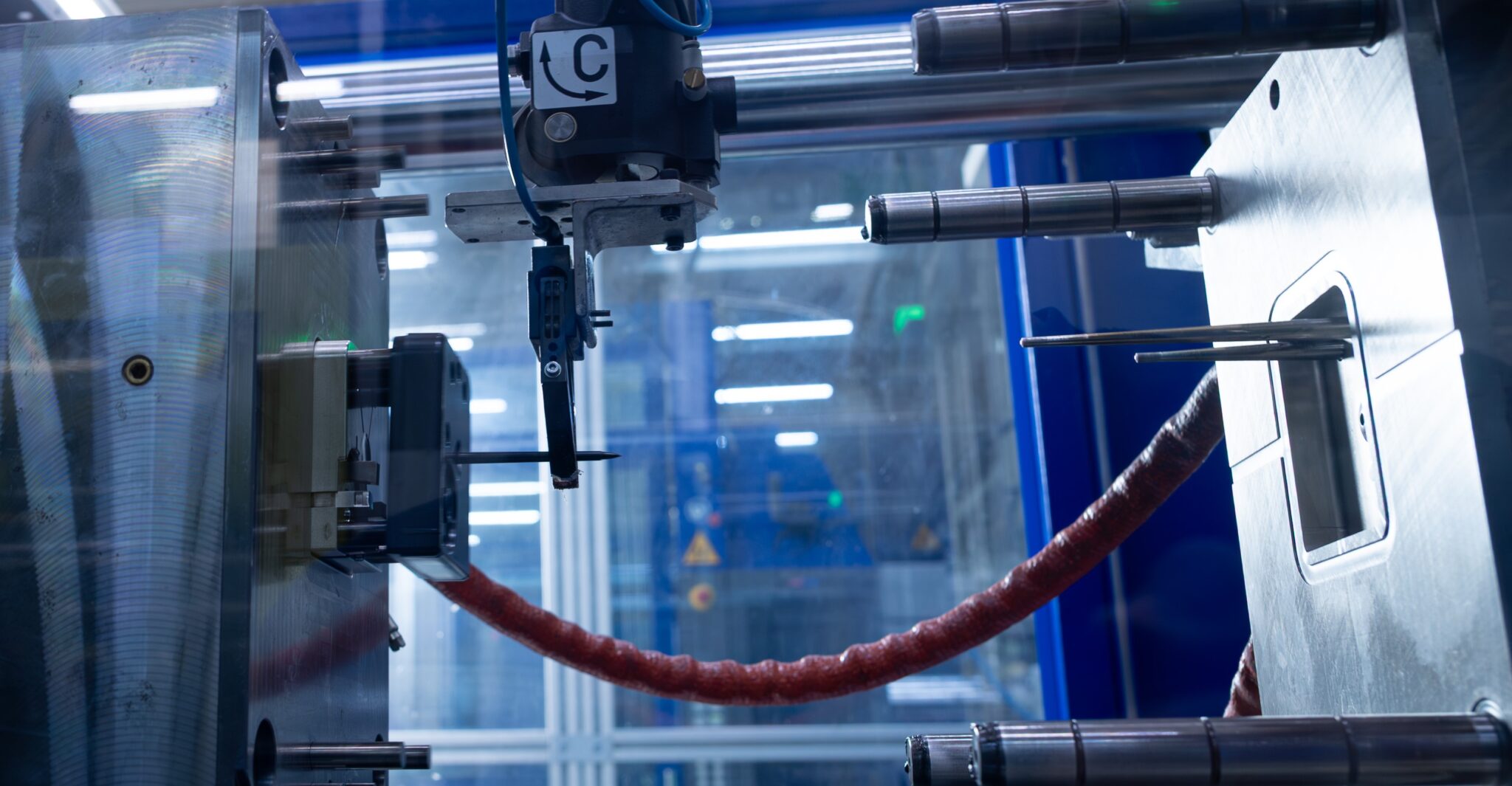 Die Teile des Werkzeugs werden kraftschlüssig verschlossen – meist servohydraulisch, oder mechanisch. - Einspritzen
